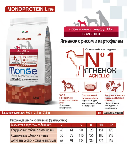Monge Dog Monoprotein Mini мелких пород ягненок с рисом и картофелем 2,5 кг