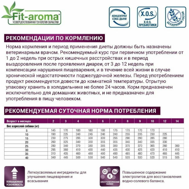 Высокая усвояемость: облегченная рецептура позволяет быстрее и легче усваивать питательные вещества, что особенно важно при расстройствах ЖКТ.