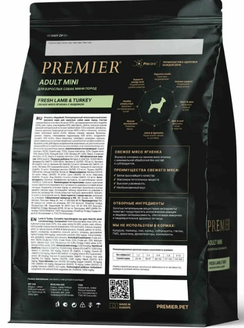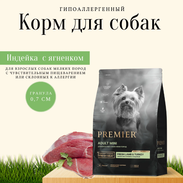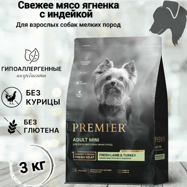 Premier ADULT Mini свежее мясо ягненка с индейкой 3кг