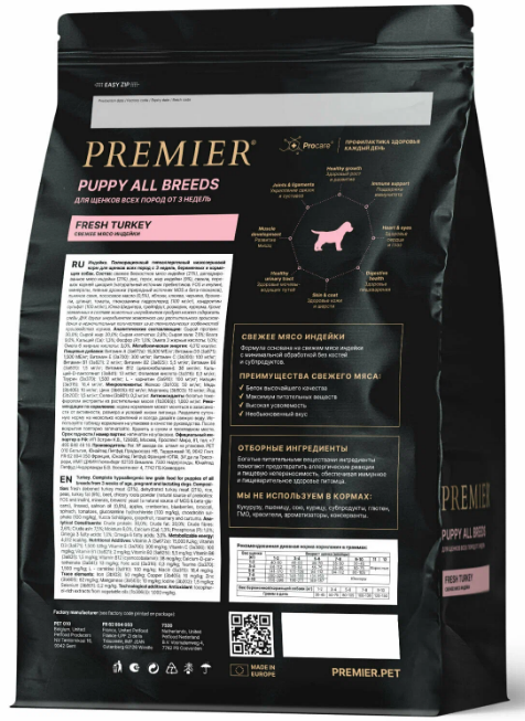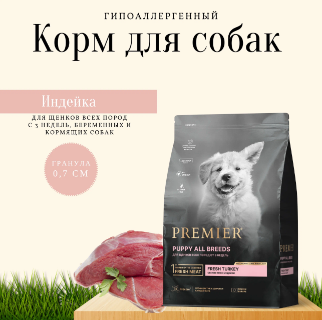 Premier Dog Turkey PUPPY (Свежее мясо индейки для щенков) 3 кг
