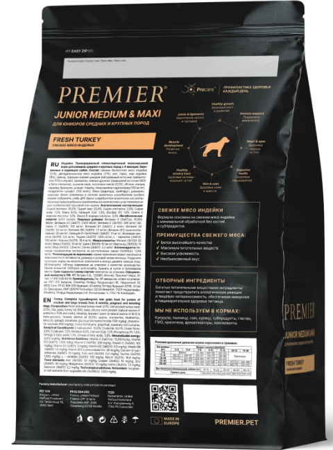 Premier JUNIOR свежее мясо индейки 3кг
