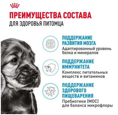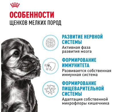 Корм сухой полнорационный для щенков мелких пород (вес взрослой собаки до 10 кг) в возрасте до 10 месяцев MINI PUPPY 2-10 months (МИНИ ПАППИ 2-10 месяцев) ROYAL CANIN®, подходящий для щенков мелких пород в возрасте до 10 месяцев, специально разработан с учетом потребностей в питательных веществах вашего щенка в период роста.