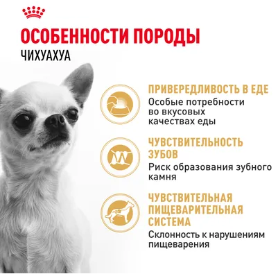Гранулы ROYAL CANIN® CHIHUAHUA ADULT (ЧИХУАХУА ЭДАЛТ) форма, размер и текстура которых созданы специально для собак породы чихуахуа, а также они обладают высокой вкусовой привлекательностью, благодаря тщательно подобранному ароматическому профилю. Также за счет содержания специальных минеральных веществ и специально подобранной текстуре гранул, которая оказывает чистящее воздействие, продукт помогает ограничить образование зубного камня и поддерживает здоровье зубов.