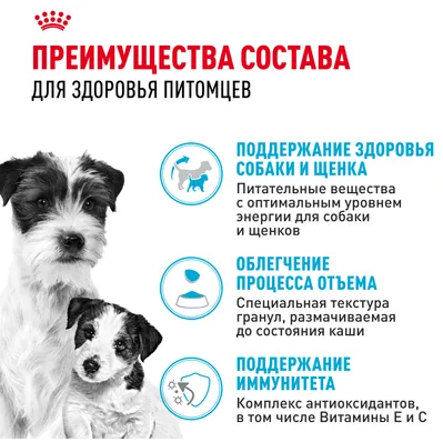 Поскольку иммунная система вашего щенка развивается постепенно, корм ROYAL CANIN® MINI STARTER MOTHER & BABYDOG (МИНИ СТАРТЕР МАЗЕ ЭНД БЭБИДОГ) содержит эффективный комплекс антиоксидантов, включая витамины С и Е.