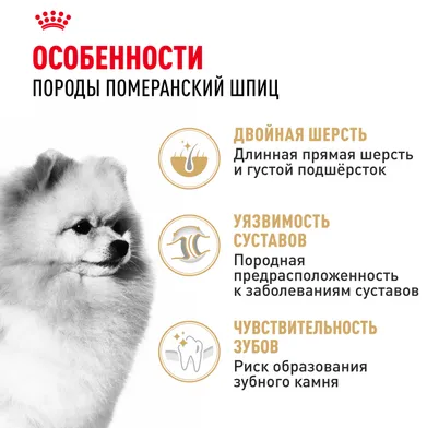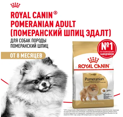Корм сухой полнорационный для взрослых и стареющих собак породы Померанский шпиц старше 8 месяцев POMERANIAN ADULT (ПОМЕРАНСКИЙ ШПИЦ ЭДАЛТ) ROYAL CANIN®, подходящий для собак породы померанский шпиц в возрасте от 8 месяцев, специально разработан с учетом потребностей вашей собаки в питательных веществах.