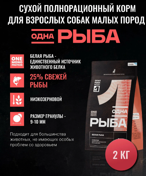 Сухой полнорационный корм для взрослых собак малых пород с белой рыбой "Одно Мясо" - это высококачественный продукт, разработанный специально для поддержания здоровья и активности вашего питомца.