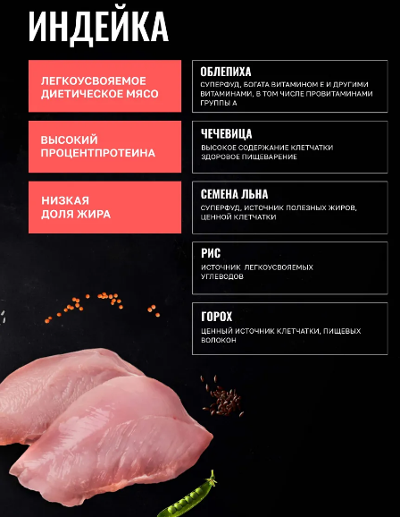 Сухой корм ОДНО МЯСО для взрослых собак малых пород с индейкой (монопротеин) сочетает в себе преимущества рационов со свежим мясом, включая необходимые питательные вещества и сбалансированный состав микроэлементов, свойственные свежему продукту. Свежее мясо содержит все незаменимые аминокислоты, необходимые для здоровья питомцев, натуральные белки из свежего мяса легче усваиваются организмом животных, способствуя росту и поддержанию мышечной массы. Привлекательность вкуса: свежие мясные ингредиенты улучшают вкус и аромат корма, делая его более привлекательным для собак.