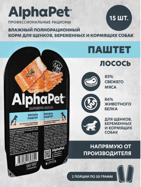 AlphaPet Superpremium паштет для щенков, беременных и кормящих собак с лососем 100 гр.