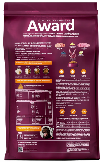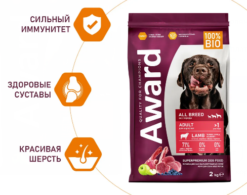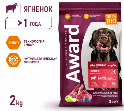 AWARD Puppy для щенков собак всех пород с ягненком и индейкой 2кг
