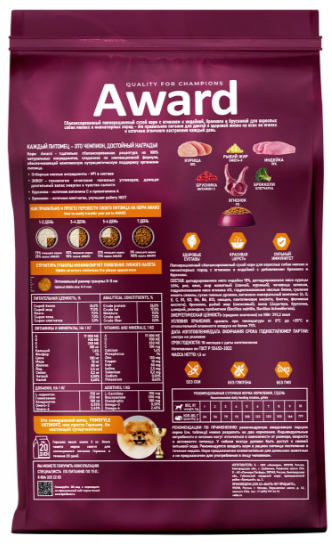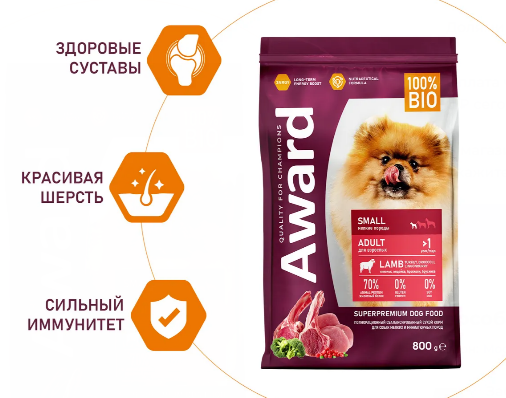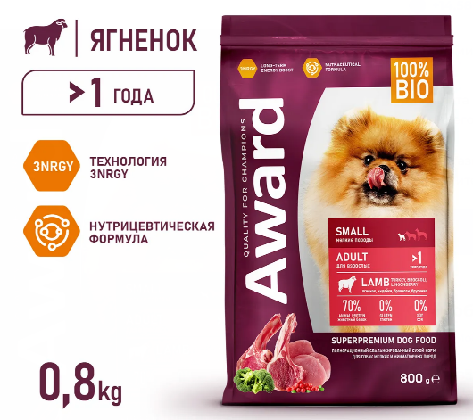 AWARD Small для мелких пород с ягненком и индейкой 800г